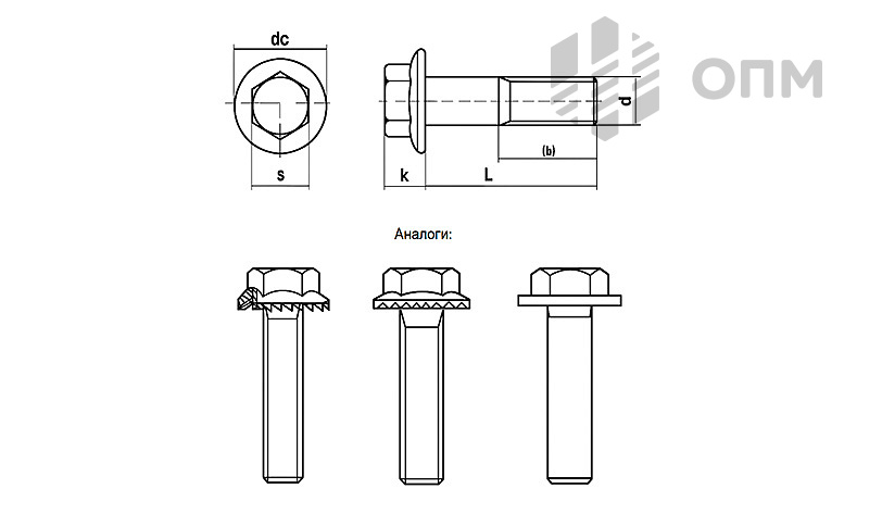 ~ DIN 6921 Болт с полной резьбой с шестигранной головкой и фланцем