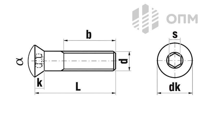 Потайная форма головки исключает выступающие элементы, а внутренний шестигранник обеспечивает передачу крутящего момента при затяжке. Это позволяет выполнять монтаж в ограниченном пространстве и снижает риск повреждения шлица.