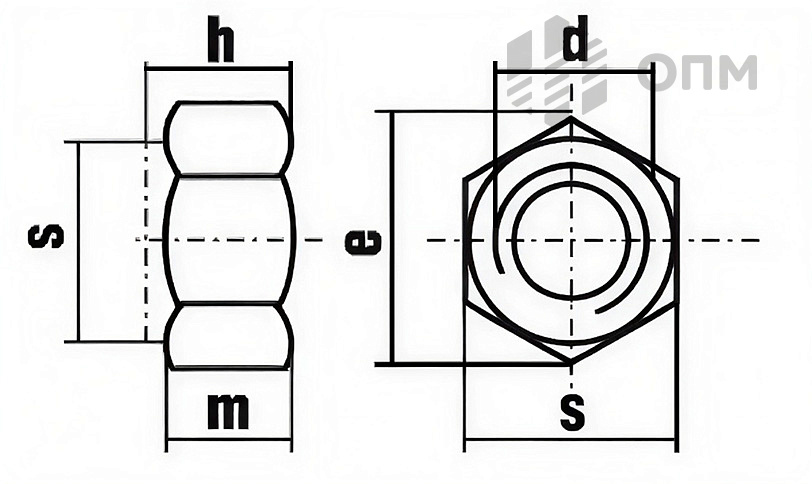 | d | d с мелким шагом резьбы | e | h | m | s | |