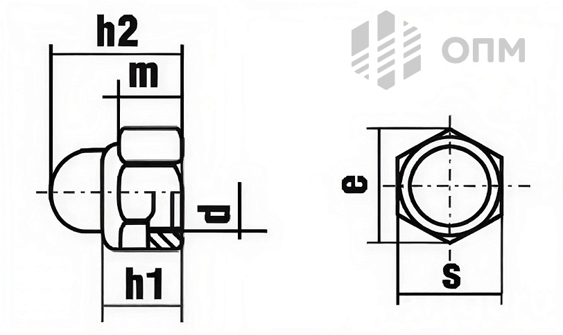 | d | d с мелким шагом резьбы | s | m | h1 | h2 |