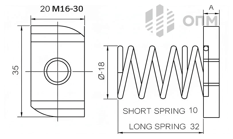 Гайка шинная с короткой пружиной