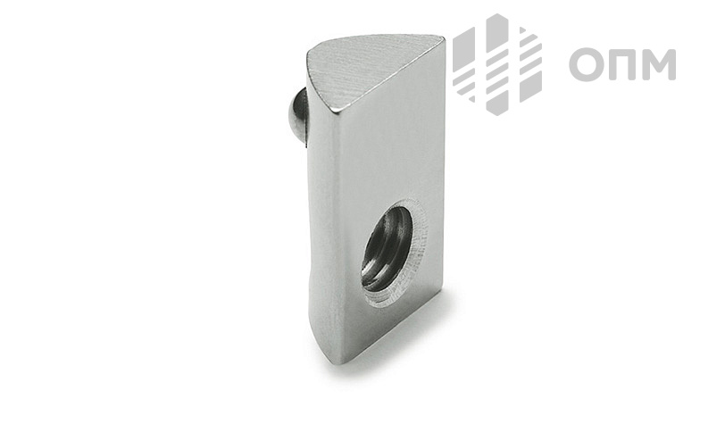 Гайка для алюминиевого профиля с подпружиненным шариком предназначена для установки в Т-образные пазы направляющих и монтажных элементов. Конструкция включает стальной или нержавеющий корпус с внутренней резьбой и встроенный подпружиненный шарик. Такая схема предотвращает случайное вертикальное смещение при монтаже и облегчает перемещение гайки внутри паза.