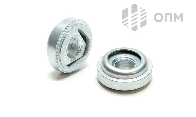 Применяется запрессовочная плавающая гайка при запрессовке в листовом металле с целью создания внутреннего резьбового соединения.