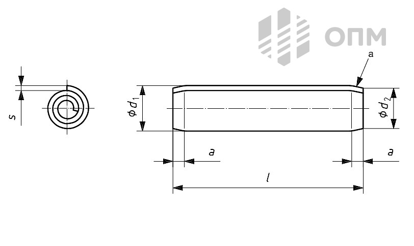 Предлагаем оптом с доставкой стальные спиральные штифты ISO 8748. Изделие является аналогом* разрезного штифта DIN 7344.