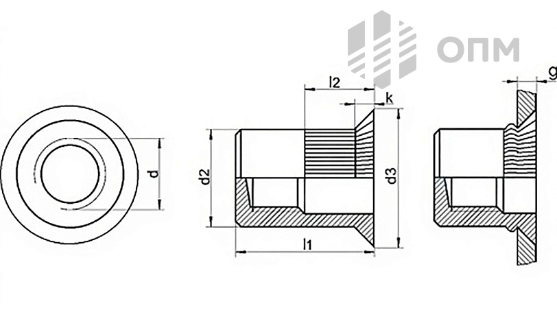 | Тип номенклатуры: | глухие заклепки-гайки |