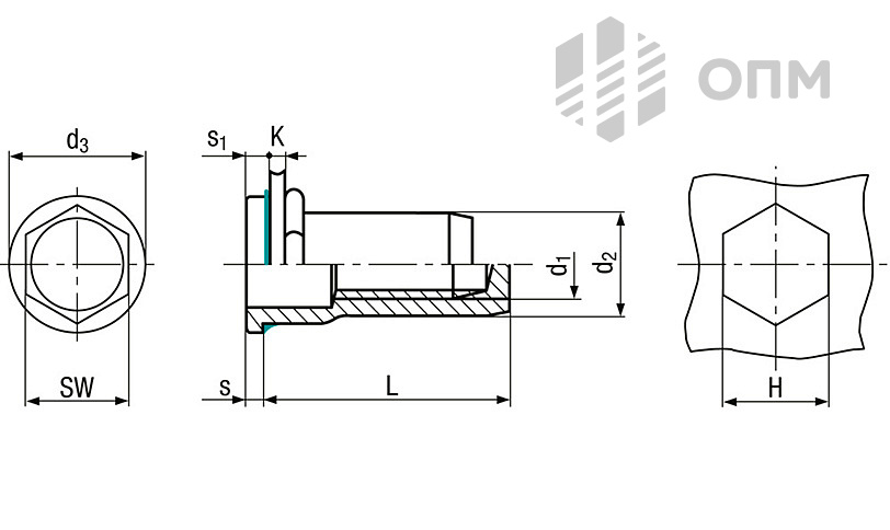 Заклёпка-гайка ОПМ 110035 предназначена для установки в шестигранные отверстия, что исключает проворачивание в мягких или тонкостенных материалах. Конструкция включает цилиндрический бортик и влагостойкое уплотнение, предотвращающее попадание влаги внутрь корпуса, особенно при сборке оборудования с повышенными требованиями к герметичности. Заклёпка-гайка выполнена из нержавеющей стали A2, подходящей для эксплуатации в условиях повышенной влажности или контакта с агрессивными веществами.