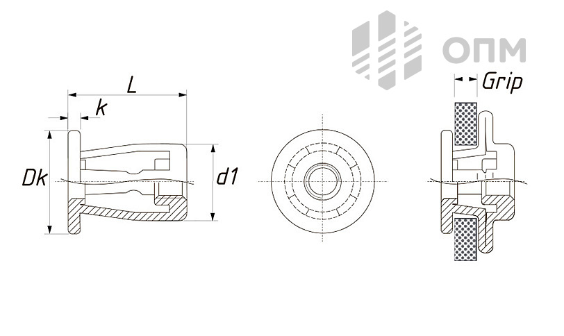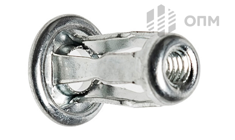Заклёпка-гайка ОПМ 110036 предназначена для установки в панели и элементы из мягких материалов — композитов, пластика, алюминия. При затяжке образует распорное тело, которое фиксирует гайку в заготовке без риска вырыва. Цилиндрический бортик служит упором, ограничивая глубину посадки. В зависимости от исполнения, используется углеродистая сталь (тип JF-S, JF2-S) или нержавеющая сталь (тип JF-B), что позволяет подобрать вариант под конкретные условия эксплуатации.